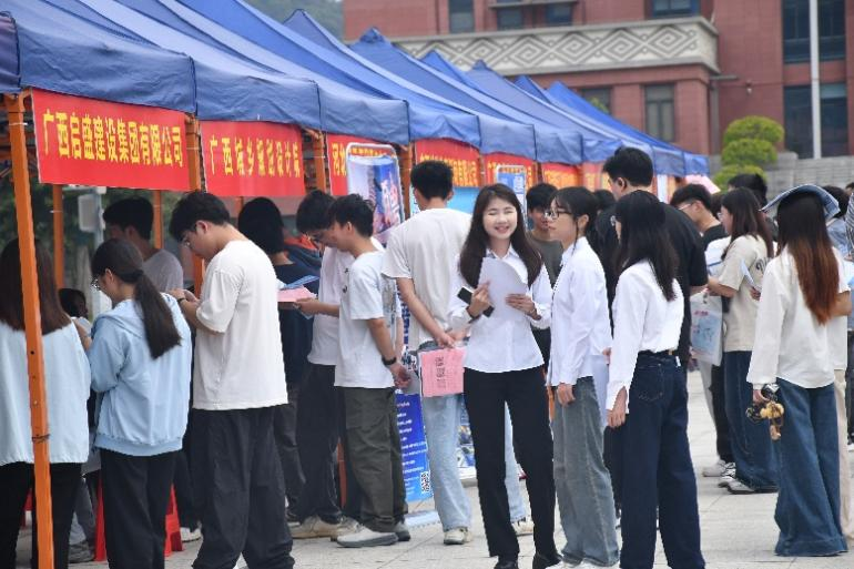 11月8日,广西民族大学武鸣校区2026届毕业生首场专场招聘会在厚德广场顺利举行,本次招聘会由应用技术学院、材料与环境学院、建筑工程学院、人民武装学院联合举办。