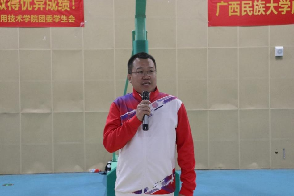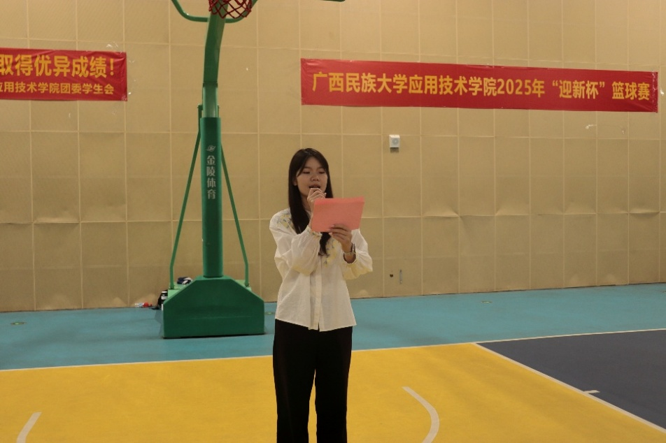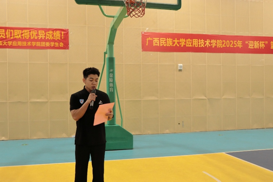 11月10日,应用技术学院“迎新杯”篮球赛开幕式在武鸣校区体育馆举行。全体学院全体领导出席,学院全部参赛队伍参加。