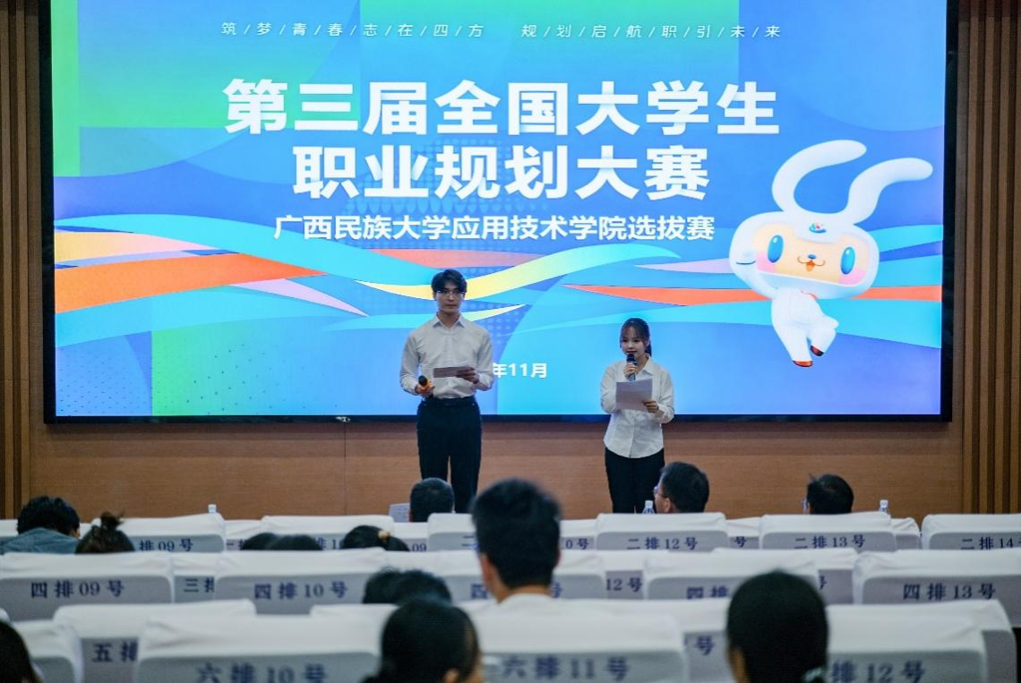 11月13日,第三届全国大学生职业规划大赛应用技术学院选拔赛决赛在武鸣校区椭圆形报告厅举办。本次比赛设求职综合展示和现场答辩两个环节,经过学生报名、班级推荐、学院初审等环节,共有10位选手进入决赛。