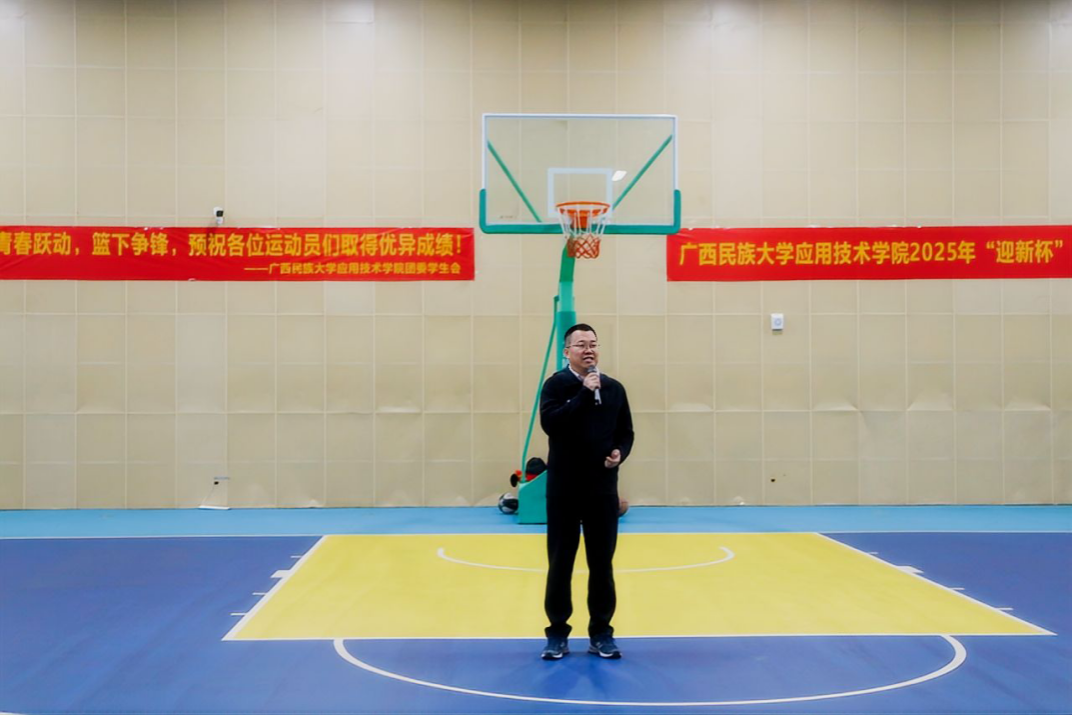 2025年12月3日,广西民族大学应用技术学院2025年“迎新杯”篮球赛闭幕式在武鸣校区体育馆隆重举行,学院副院长张新蕾出席。全体参赛队员、裁判员及观赛师生齐聚现场,共同见证赛事收官。